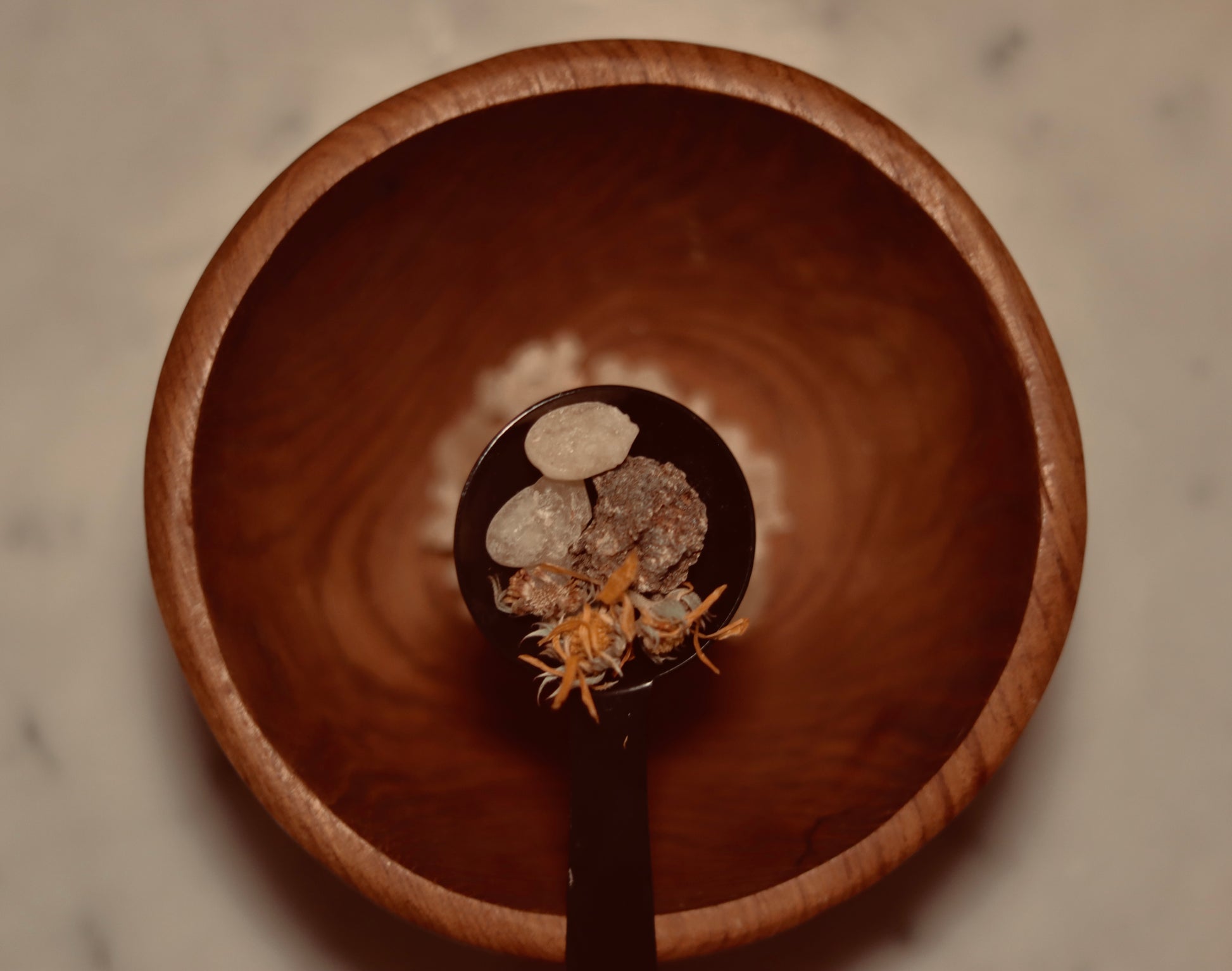 Myrrh Resin: Renowned for its antimicrobial and wound-healing abilities, aiding in calming inflamed or irritated skin.